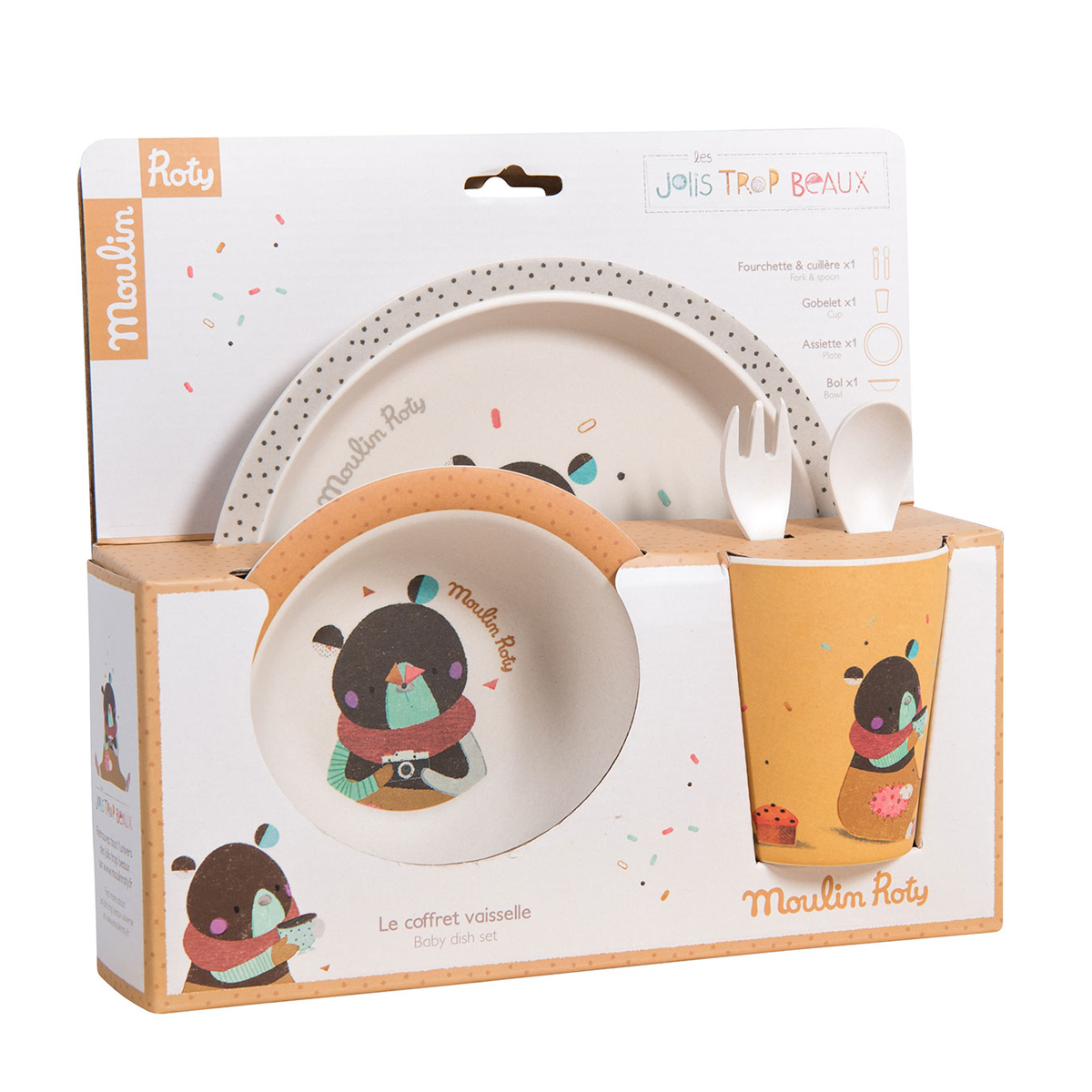 Moulin Roty Set Vaisselle Ocre "Les Jolis Trop Beaux"