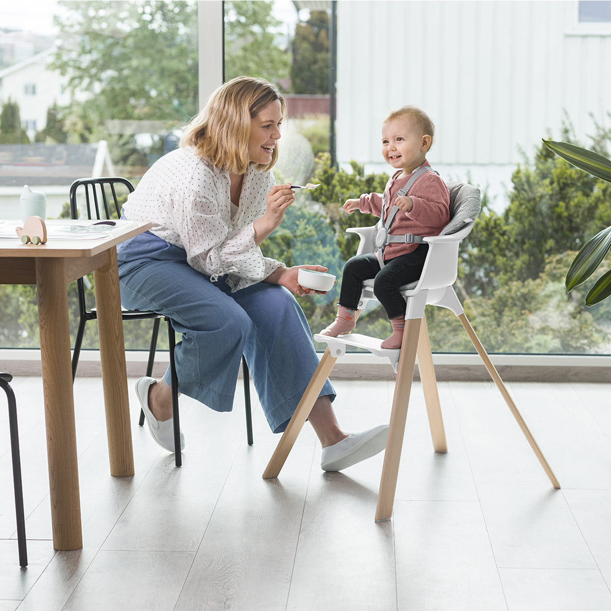 La Chaise Haute Clikk a été conçue par Stokke pour répondre à tous vos besoins. Elle est donc livrée avec un plateau ainsi qu'un harnais de sécurité à cinq points. Elle pourra donc être utilisée non seulement pour les repas à table mais aussi pour les moments de jeu ! Son montage sans outil sera très simple à réaliser. Avec elle, fini les prises de tête !