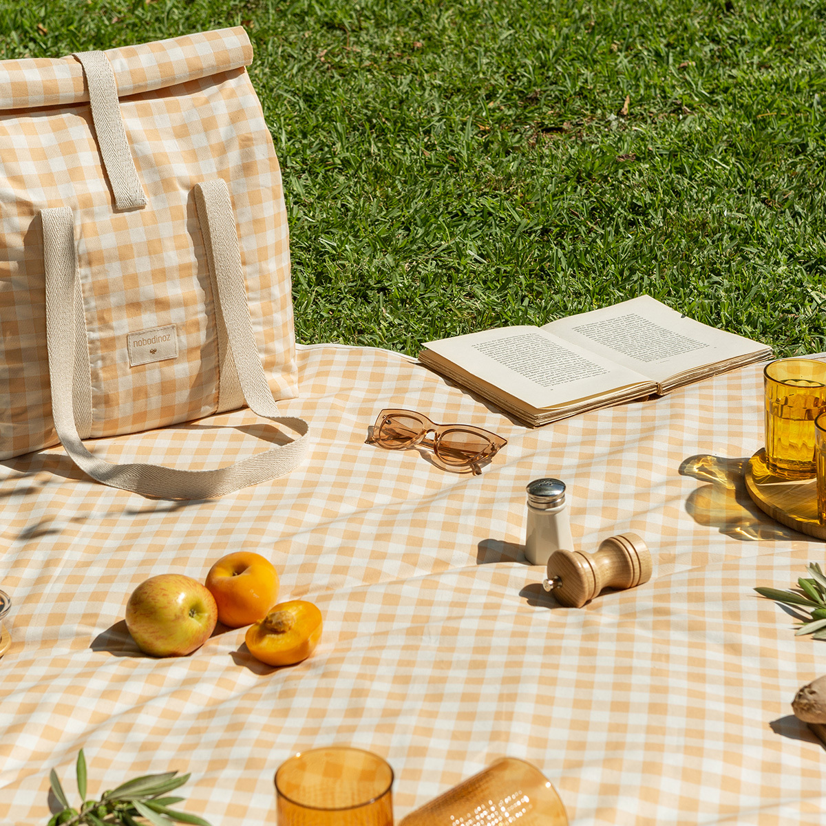 • Nobodinoz Couverture Picnic Imperméable Sunshine - Melon Vichy