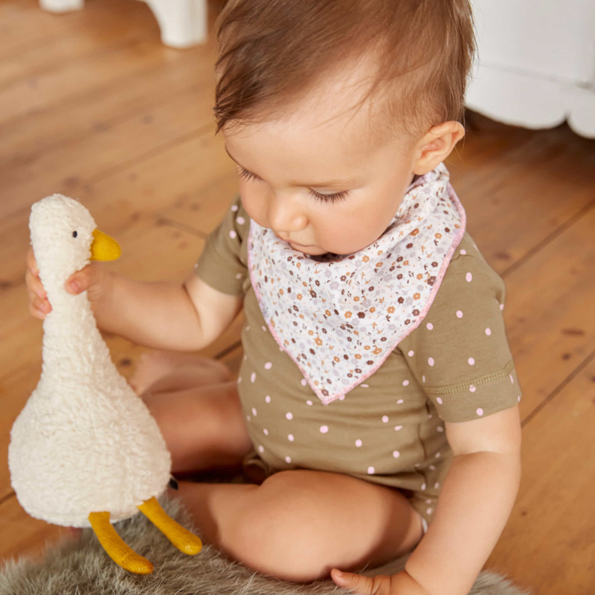 Confectionné en coton biologique, cette oie sera très douce au contact de la peau sensible de votre enfant.
