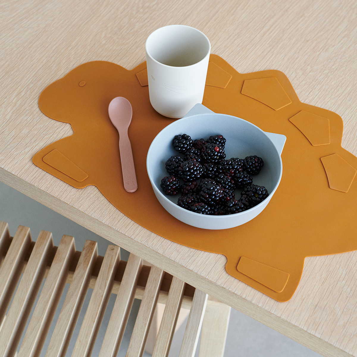 En forme de dinosaure, le Set de Table Tracy de Liewood rendra les repas beaucoup plus marrants et beaucoup plus propres. Il vous suffira de le placer à l'endroit où votre enfant a l'habitude de prendre son repas. Ce dernier viendra alors à table avec plaisir, impatient de déguster son repas en bonne compagnie.