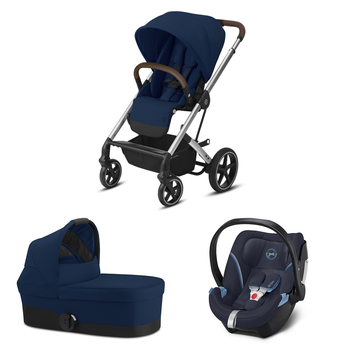 • Acheter Cybex Poussette Trio Balios S Lux Cadre Argent Nacelle S et Siège Auto Aton 5 - Navy Blue