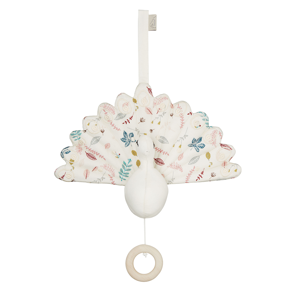 A l'heure du dodo, rien de mieux qu'une jolie musique pour aider bébé à trouver le sommeil ! Cam Cam a conçu pour cela un joli Mobile Musical Paon. Original et poétique, ce mobile en forme de paon majestueux, délicatement brodé, jouera pour bébé une musique douce qui l'aidera à s'endormir.