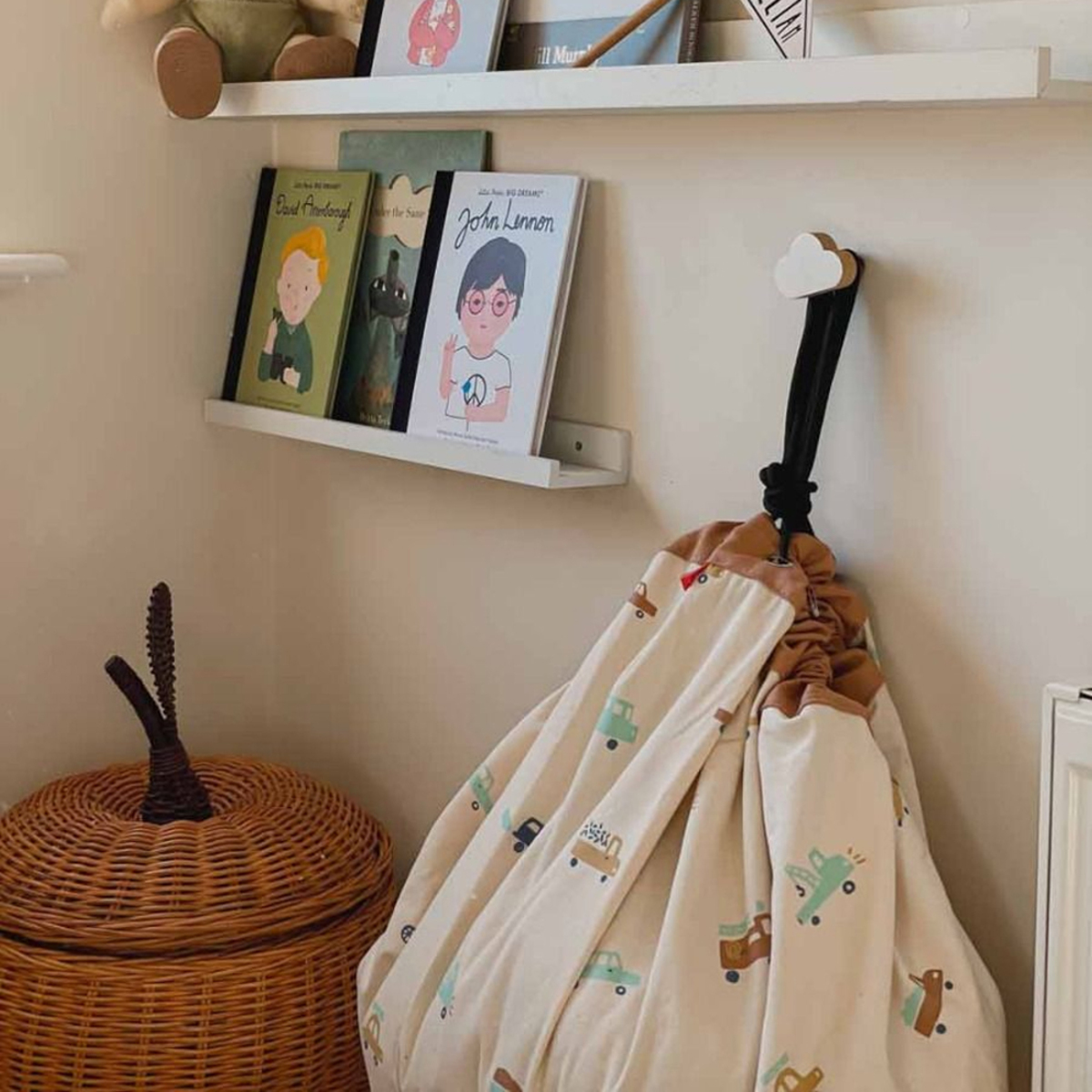 Ce Sac à Jouets conçu par Play & Go sera la solution de rangement idéale ! Grâce à sa conception astucieuse et à son tissu réversible, il sera à la fois sac de rangement et tapis de jeux.