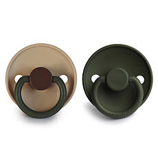 • Frigg Lot de 2 Tétines Color Blocks Caoutchouc Acorn & Olive - 0/6 Mois