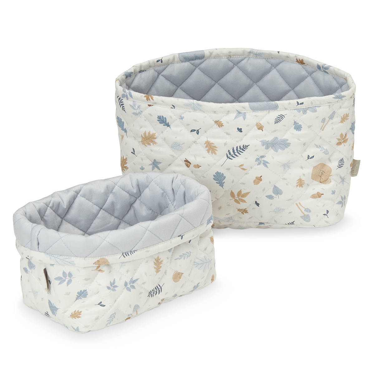 Afin de jouer avec les textures, le haut des paniers pourra être retourné. Leur délicat imprimé quant à lui, leur permettra de trouver facilement leur place partout.