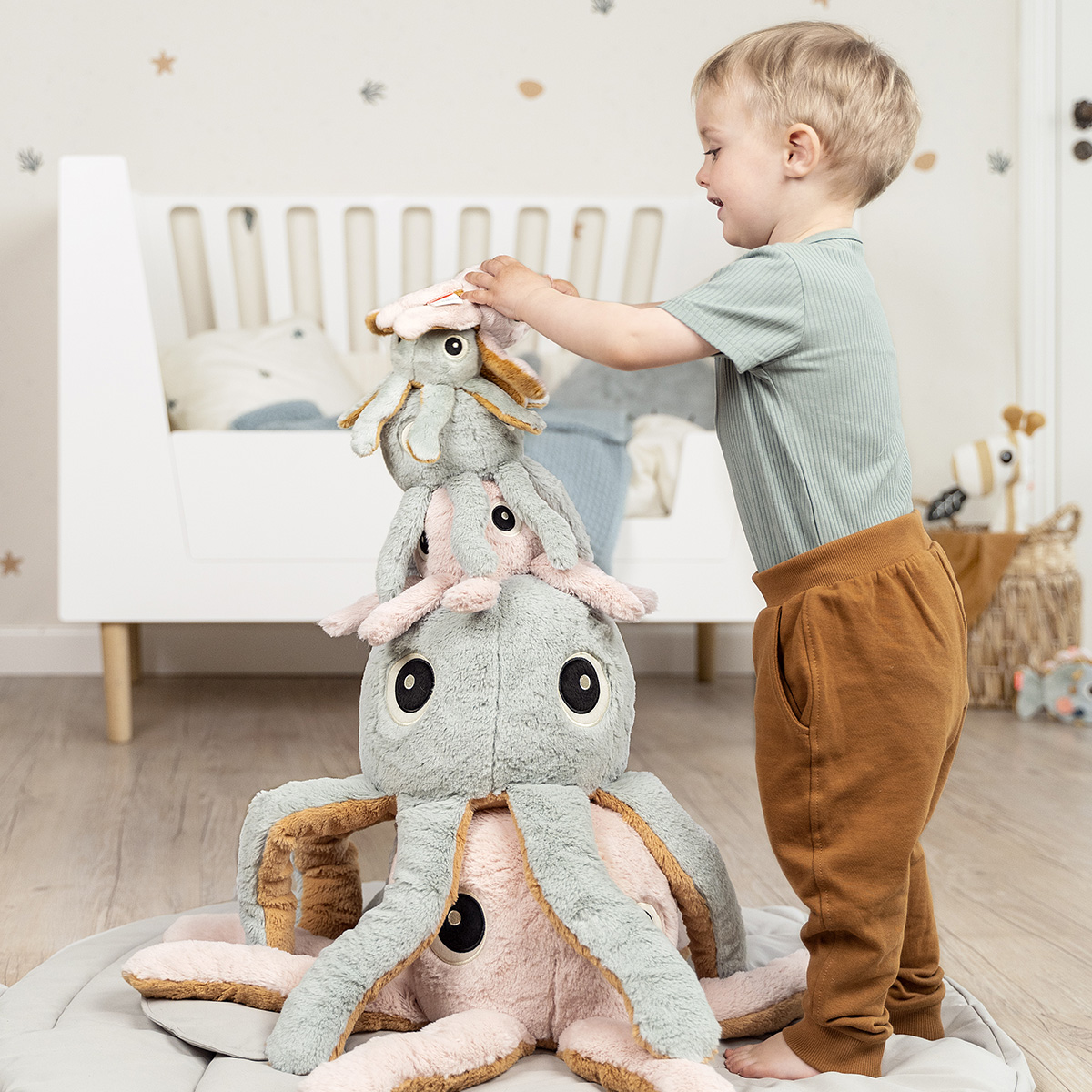 Au moment de s'endormir, elle sera un allié de taille avec ses six tentacules. Elle rassurera votre tout-petit et l'aidera à s'endormir en lui offrant des câlins sans fin.